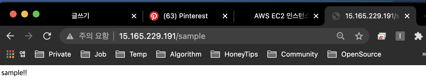 최종적으로 AWS의 IP로 접속해보면 위와 같이 정상적으로 배포가 된 걸 확인할 수 있습니다.