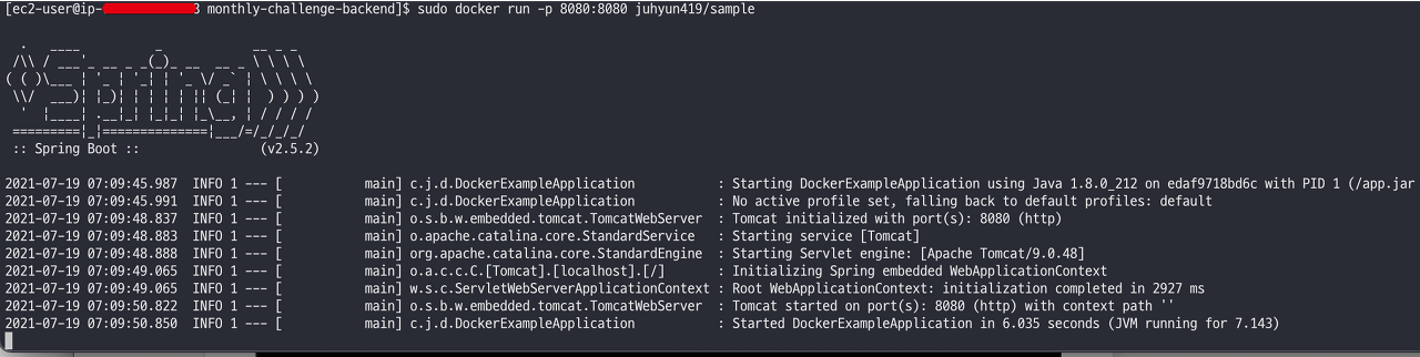 • $ sudo docker run -p 8080:8080 juhyun419/sample
