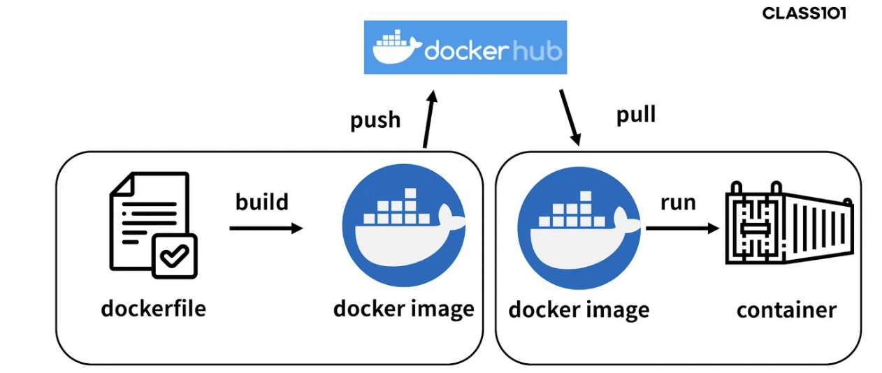 현재 상태는 위와 같이 Dockerfile 을 통해 docker image로 빌드하고, docker hub에 push한 상태입니다.
