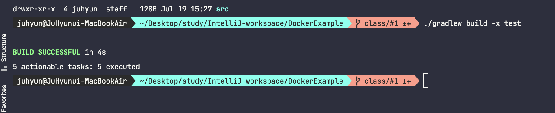 ./gradlew build -x test (-x test: 테스트 실행 X)