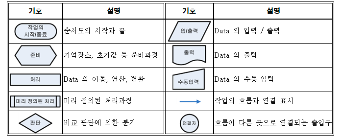 - 플로우 차트는 순서도, 흐름도라고 합니다. 어떠한 일을 처리하는 과정을 순서대로 간단한 기호와 도형으로 도식화한 것을 의미하며, 알고리즘이나 프로그램의 논리 혹은 흐름을 그림으로 표현하는 방법입니다.