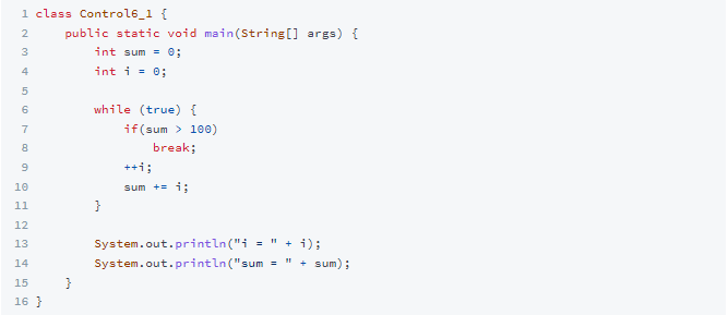 - 조건식이 거짓이 될 때까지 반복