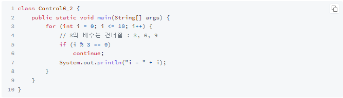 - continue문 이후의 문장들은 수행되지 않습니다.