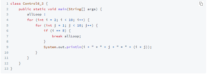 - 반복문에 이름을 붙여서 하나 이상의 반복문을 벗어납니다.