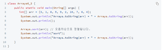 정렬 예시 코드