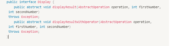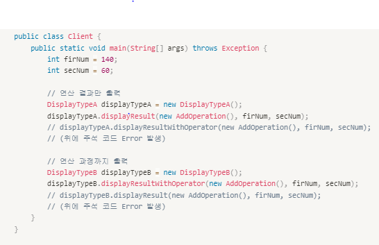 - 연산 결과를 보여주는 방법마다 인터페이스를 구현합니다.