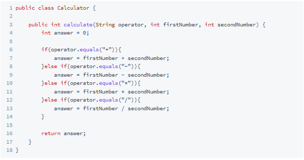 - if else 조건문 블록이 존재하며 연산자 추가 시 코드변화가 빈번하게 일어납니다.