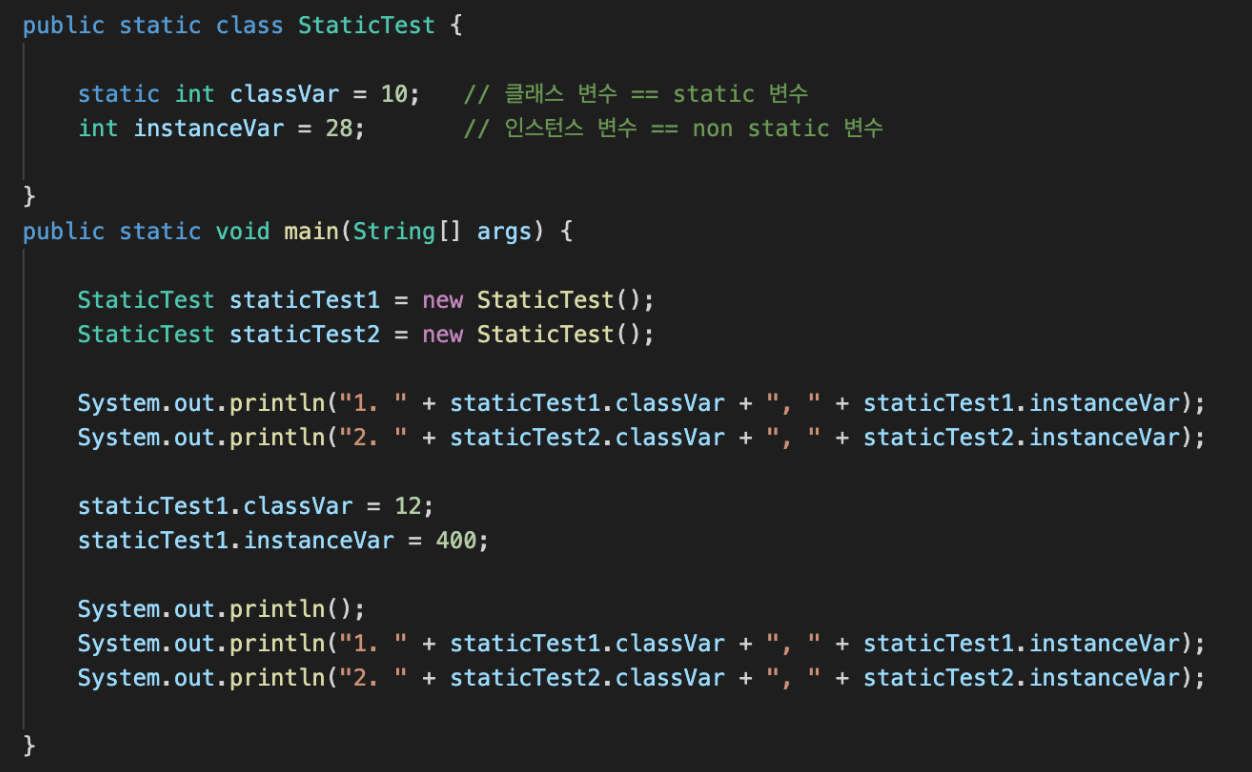 - 클래스 내에 static 키워드로 선언된 변수