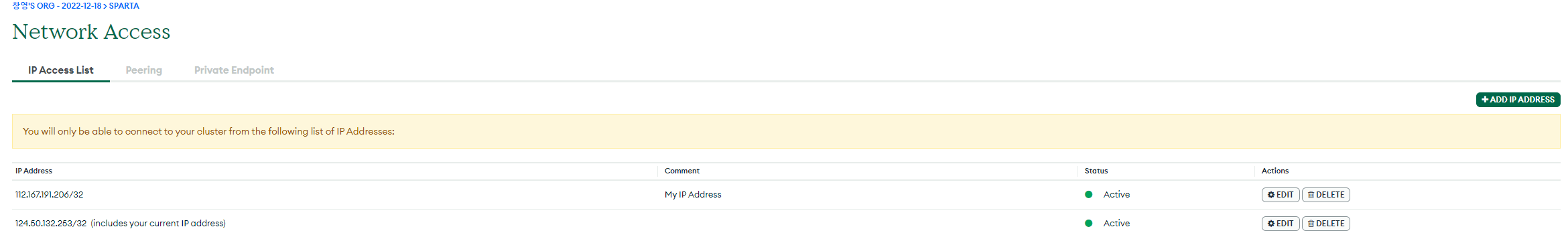 몽고DB에 들어가서 Network Access로 들어가 ADD IP ADDRESS를 클릭