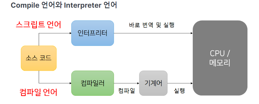 - 특징 : 소스파일의 크기가 크면 컴파일 과정이 오래 걸리며, 컴파일이 된 후에 기계어로 바로 실행되기에 속도가 빠릅니다. Java는 javac에 의해 바이트코드로 컴파일 되지만 JVM에서는 인터프리터로 실행되며, Compile 언어이지만, Interpreter 언어의 특징을 동시에 가집니다.