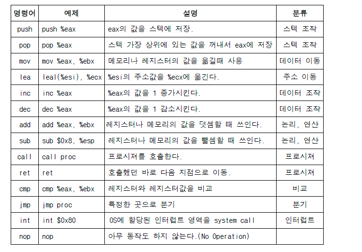 - 기계 명령어와 일상 용어를 일대일로 매칭하는 기계거와 니모닉의 매칭 코드표 즉 '어셈블리'라고 합니다.